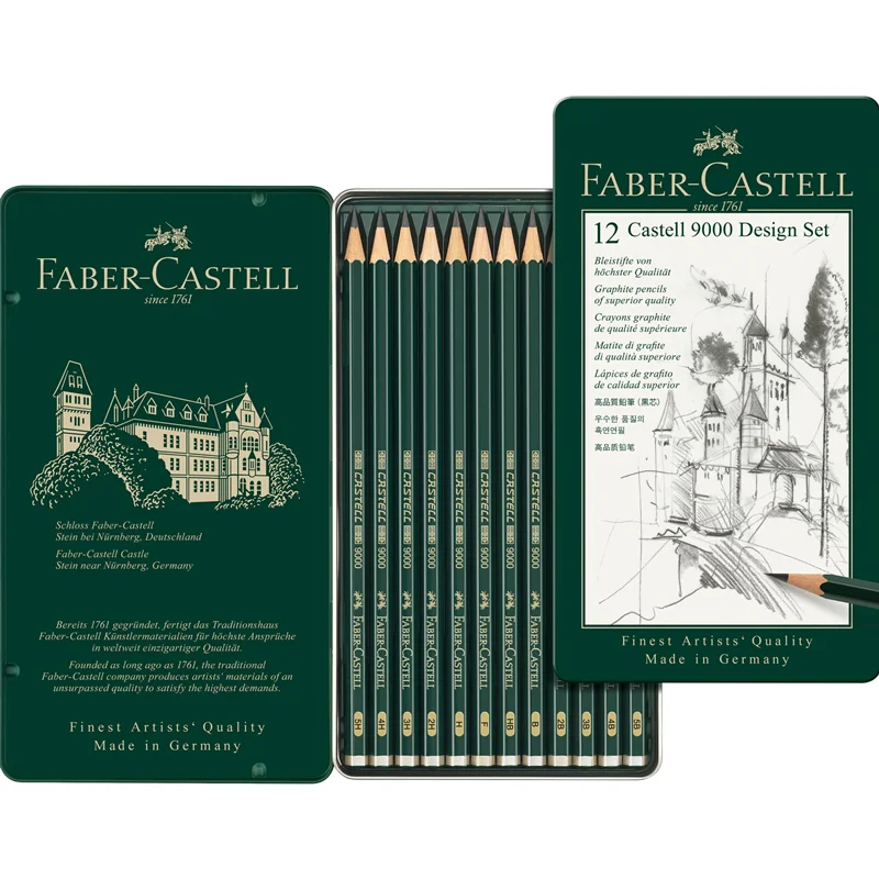 12 عدد مداد طراحی: 5B - 4B - 3B - 2B - B -HB - F - H - 2H - 3H - 4H - 5H