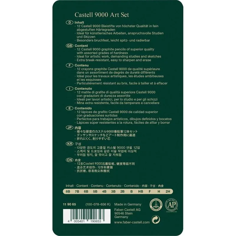 12 عدد مداد طراحی: 8B - 7B - 6B - 5B - 4B - 3B - 2B - B - HB - F - H - 2H