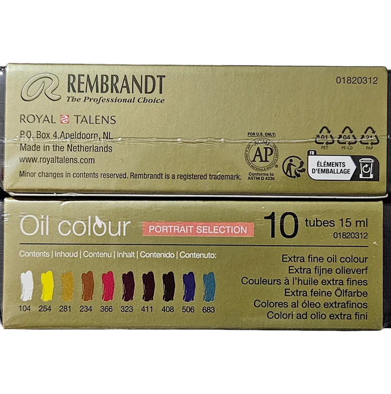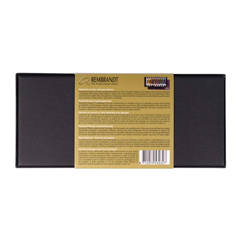 اصل هلند - ۱۰ رنگ منظره شامل: 103 Mixed White – 284 Permanent Yellow Medium – 234 Raw Sienna – 408 Raw Umber – 411 Burnt Sienna – 537 Permanent Violet Medium – 620 Olive Green – 623 Sap Green – 534 Cerulean Blue – 506 Ultramarine Deep)
