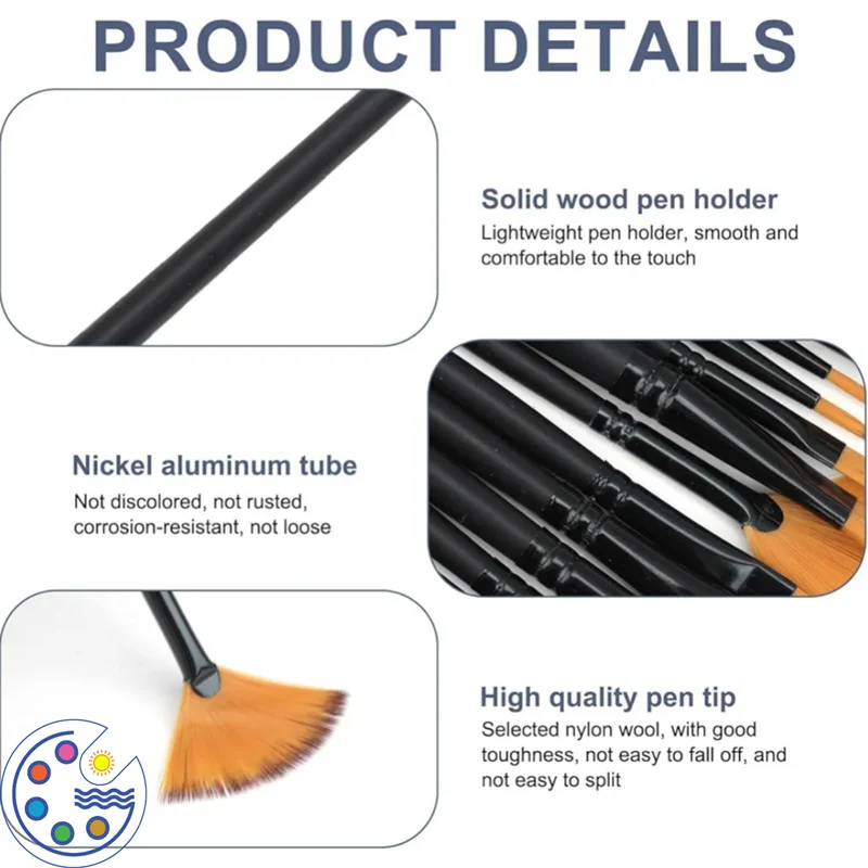 ✅️ساخت چین با کیفیت خیلی خوب✅️۱۲ عدد قلموی متنوع در سایزهای مختلف✅️مناسب نقاشی با آبرنگ و رنگ اکریلیک✅️نگهدارنده قوی آلومینیومی ضد زنگ و ضد رنگ پذیری✅️موهای نرم مصنوعی بدون ریزش با جذب رنگ عالی و انتقال راحت رنگ بروی بوم یا مقوا✅️دسته چوبی خوش دست در سایز متوسط✅️مناسب استفاده مبتدی تا حرفه ای