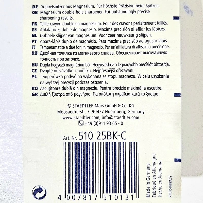 مدل 510 25bk-c با طراحی ارگونومیک فوق سبک از آلیاژ منیزیم و تیغههای فوقالعاده تیز، مناسب برای انواع مدادهای استاندارد و ضخیم است. بدنه فلزی مقاوم و دوامپذیری بالا. مناسب انواع مداد های ساده و زغالی و کنته با قطر استاندارد و غیر استاندارد. همچنین مناسب مدد های پلی کروم و رنگی