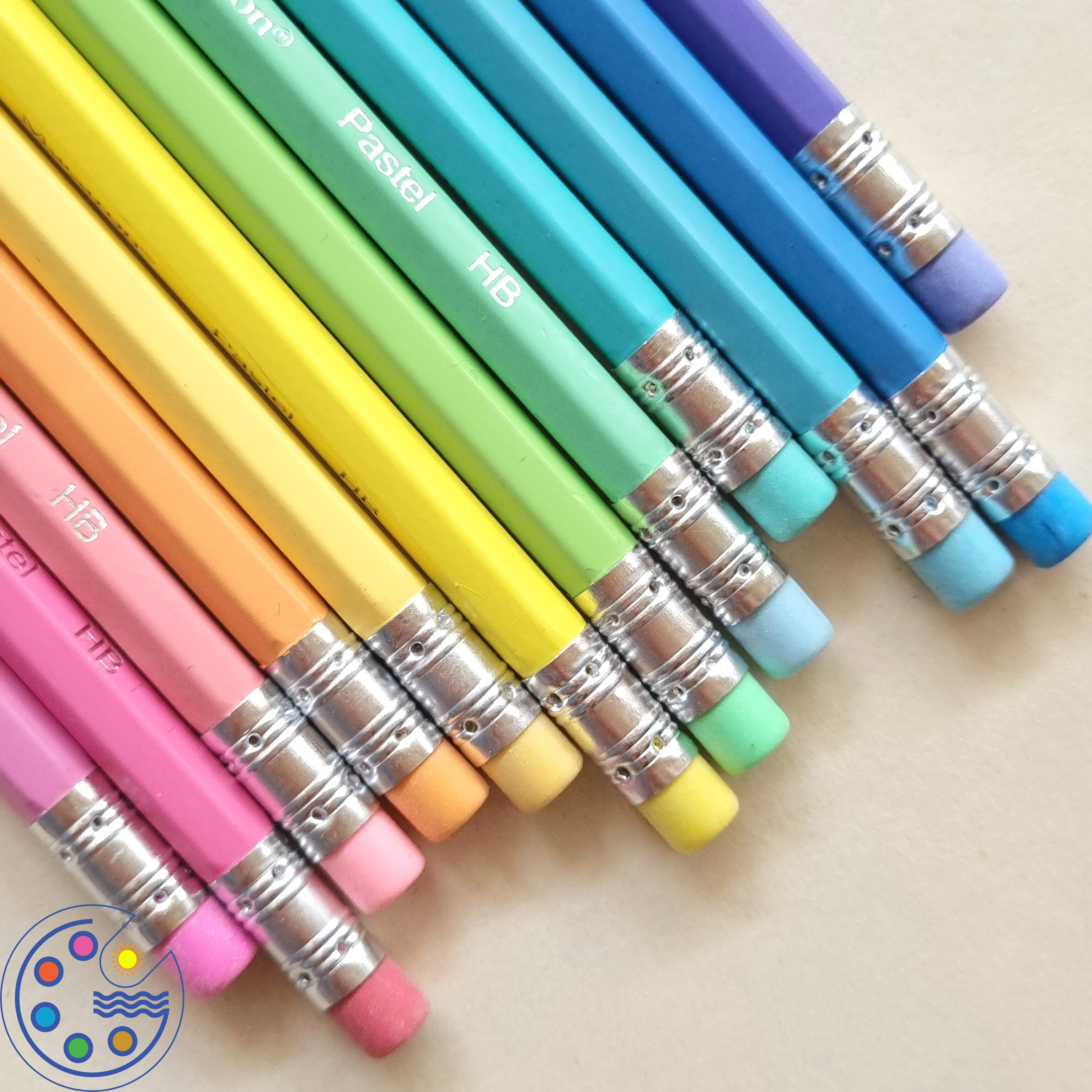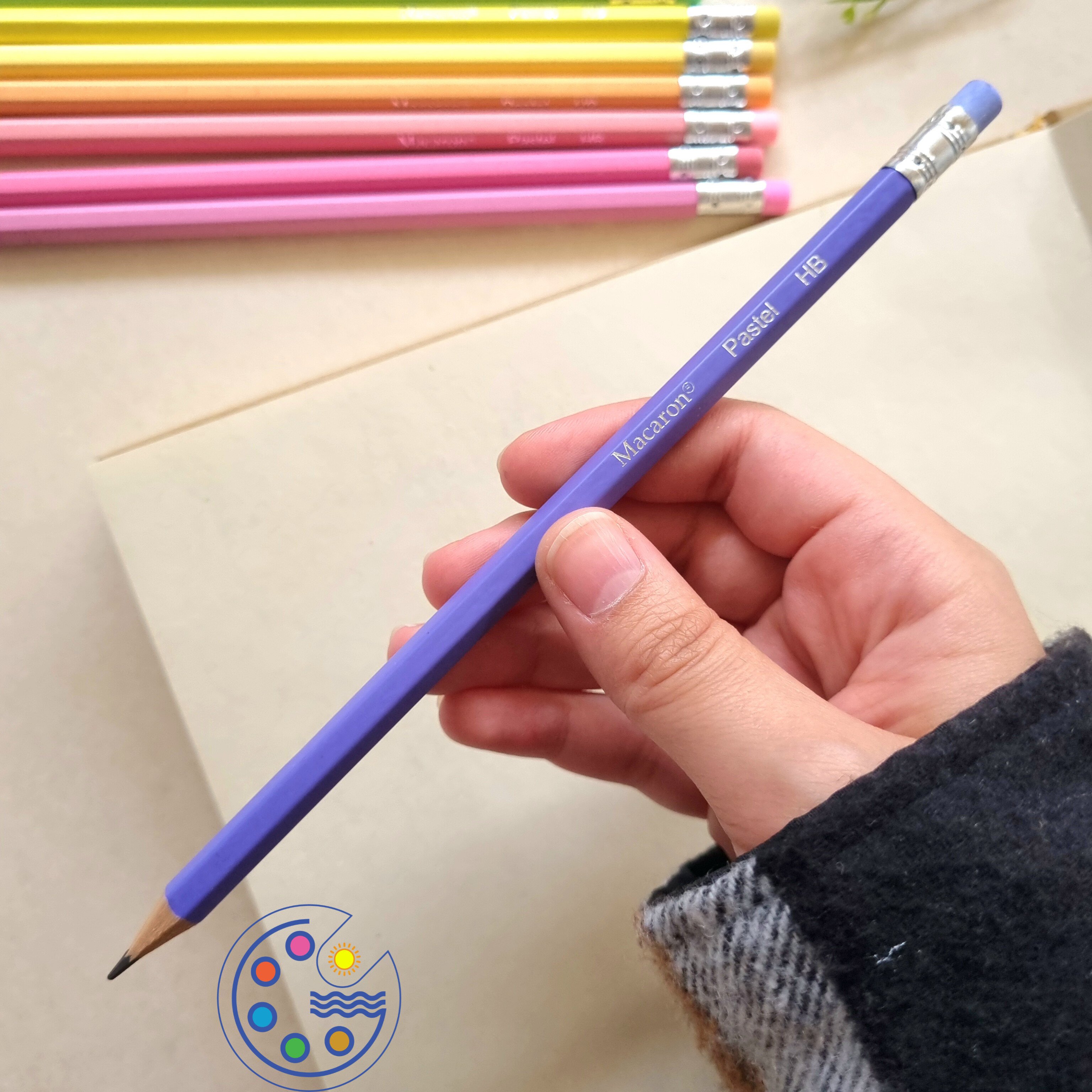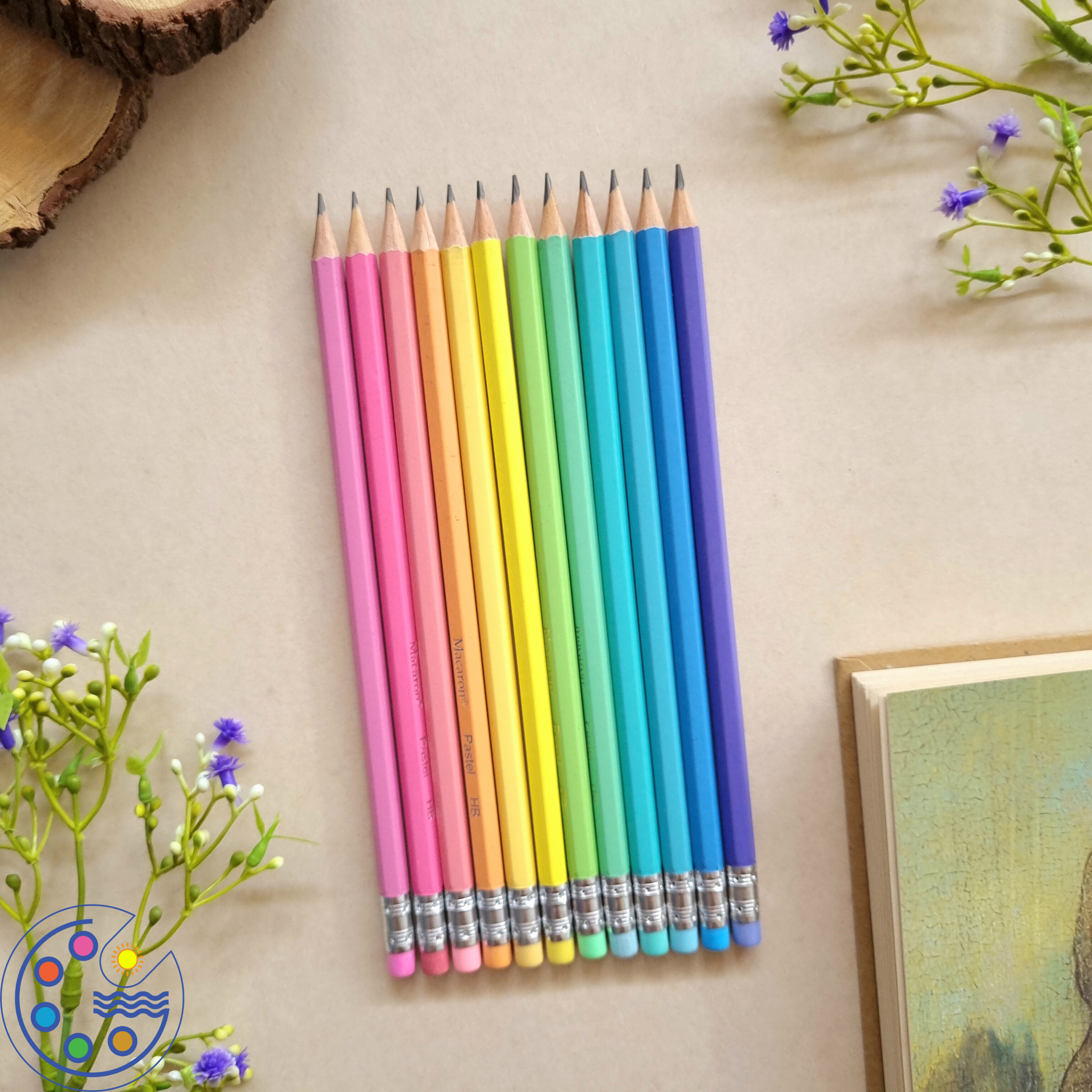 12 عدد مداد HB معمولی پاکن دار با بدنه پاستلی