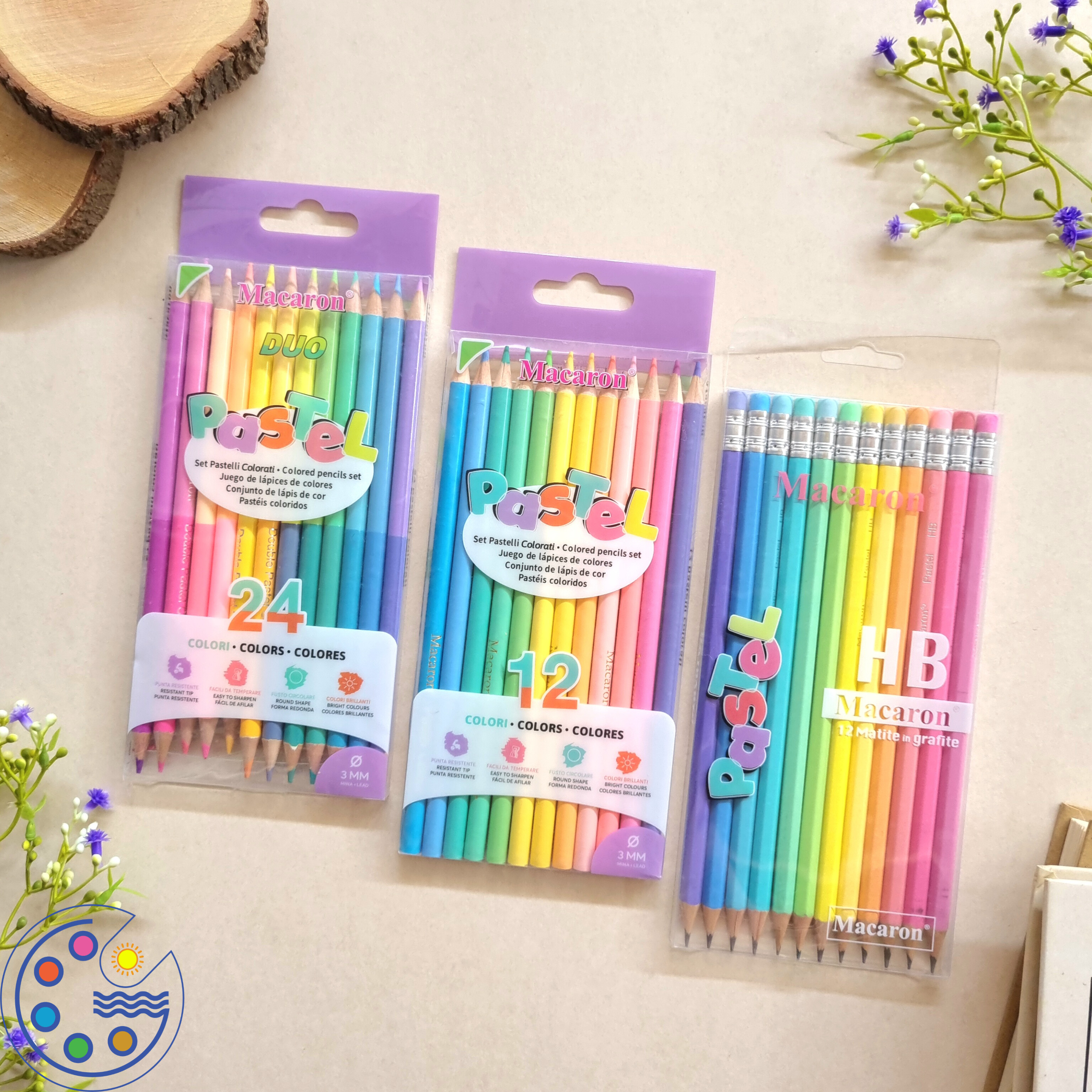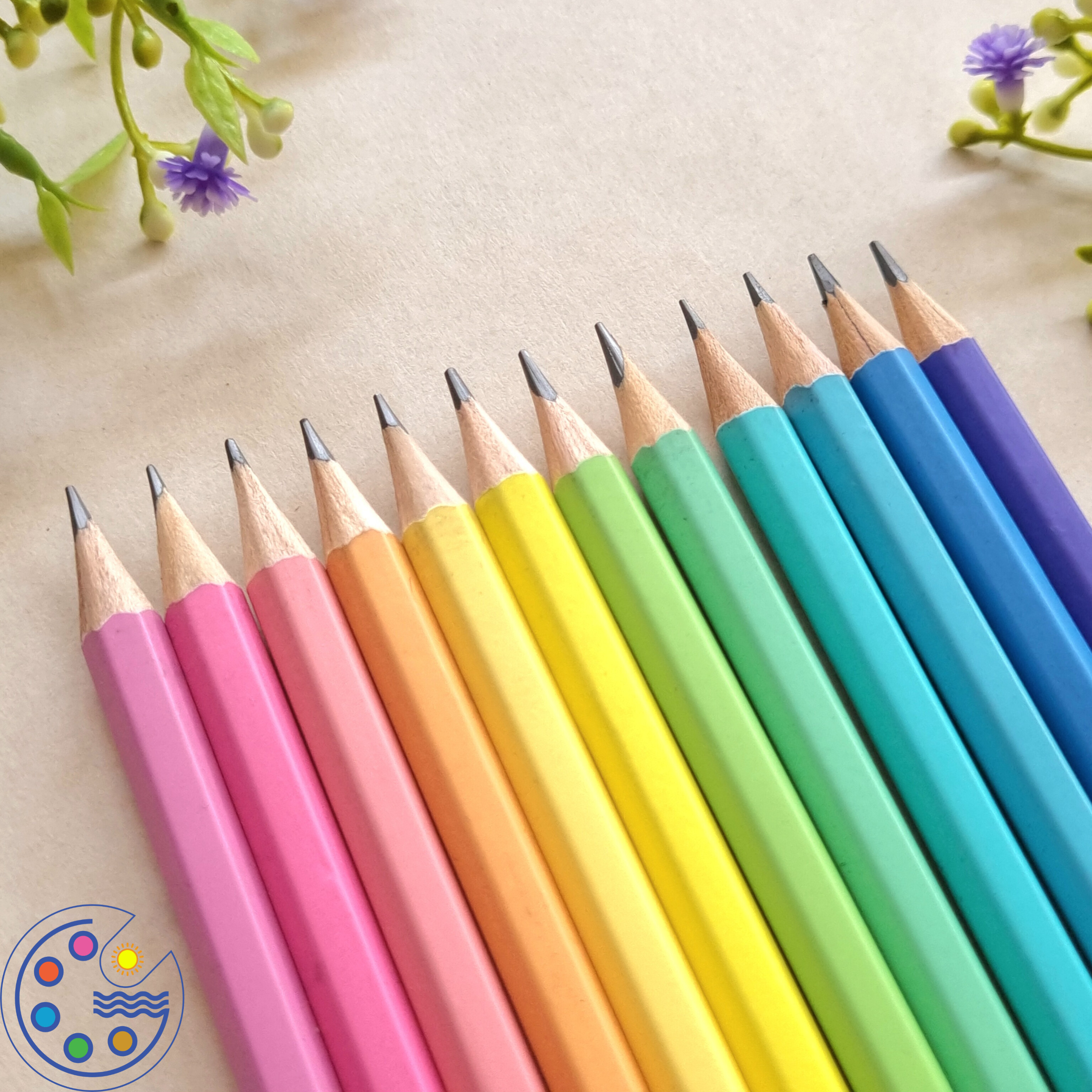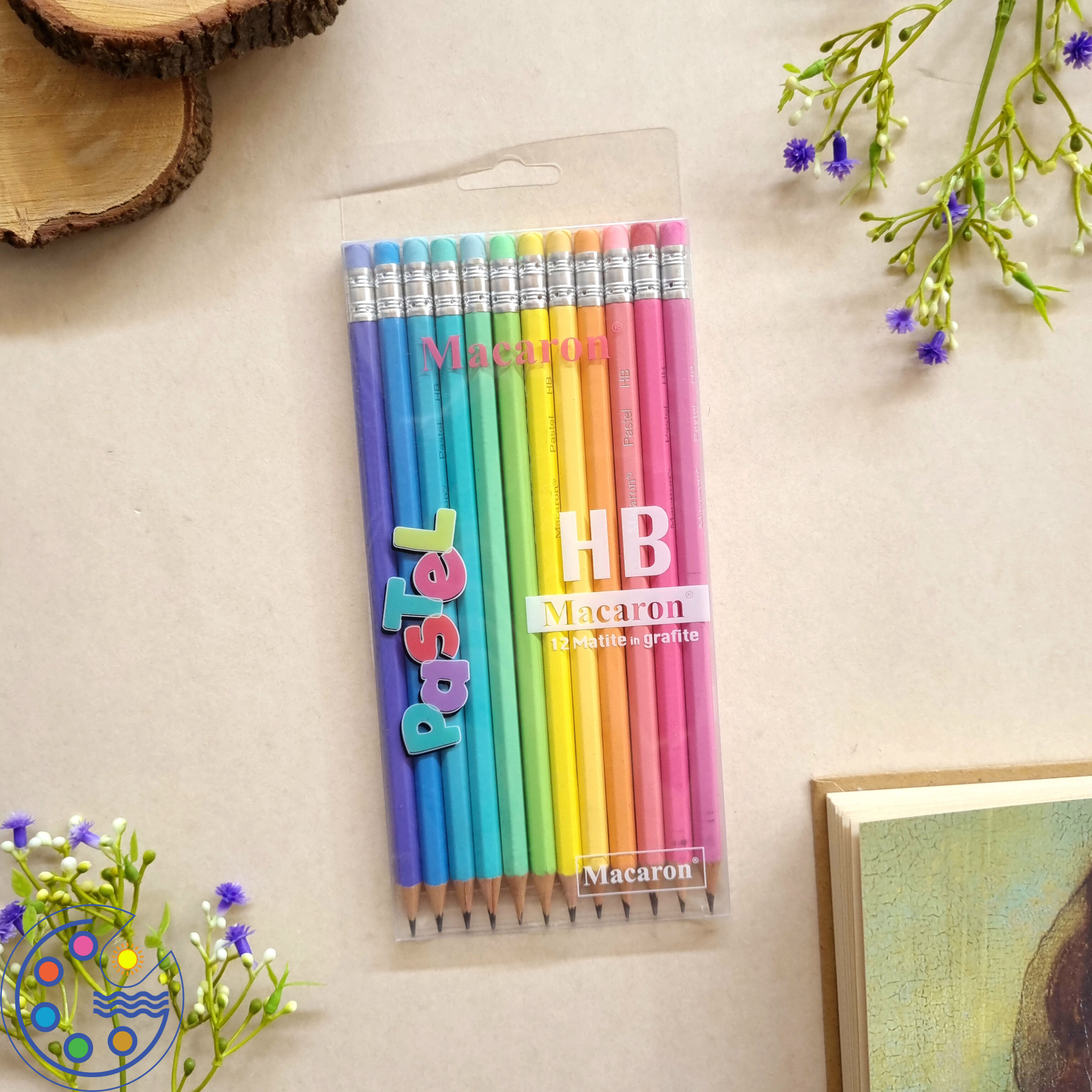 12 عدد مداد HB معمولی پاکن دار با بدنه پاستلی